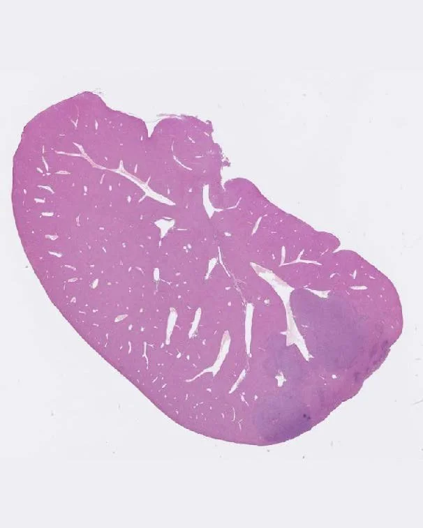Fig. 2. Exemple d’imagerie au microscope d’une coupe du lobe gauche du foie contenant la tumeur (zone un peu plus foncée en bas à droite